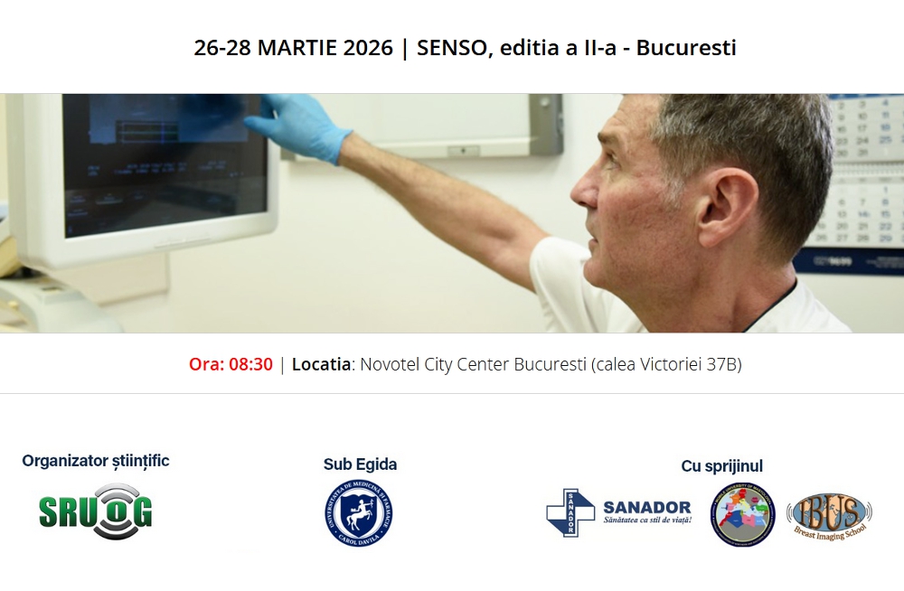 Afisari: 101Societatea Română de Ultrasonografie in Obstetrica-Ginecologie si AGOMedia va invita la Conferinta Medicala SENSO ce va avea loc in perioada 26-28 MARTIE 2026, in Bucuresti.