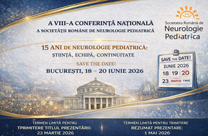 SOCIETATEA ROMÂNĂ DE NEUROLOGIE PEDIATRICĂAre plăcerea de a vă invita la "A VIII-a Conferinţă a Societăţii Române de Neurologie Pediatrică" cu tema: "15 ani de neurologie pediatrică: știință...