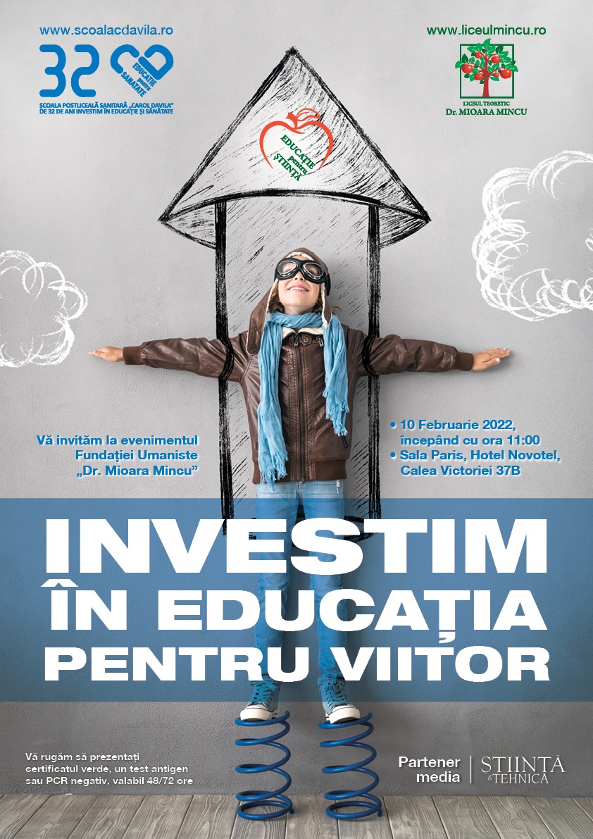 Liceul Teoretic” Dr. Mioara Mincu” și Școala Postliceală Sanitară ”Carol Davila” organizează joi, 10 Februarie 2022, conferința Educație pentru Știință – Investim în educația pentru viitor, având ca partener media Revista Știință și Tehnică.