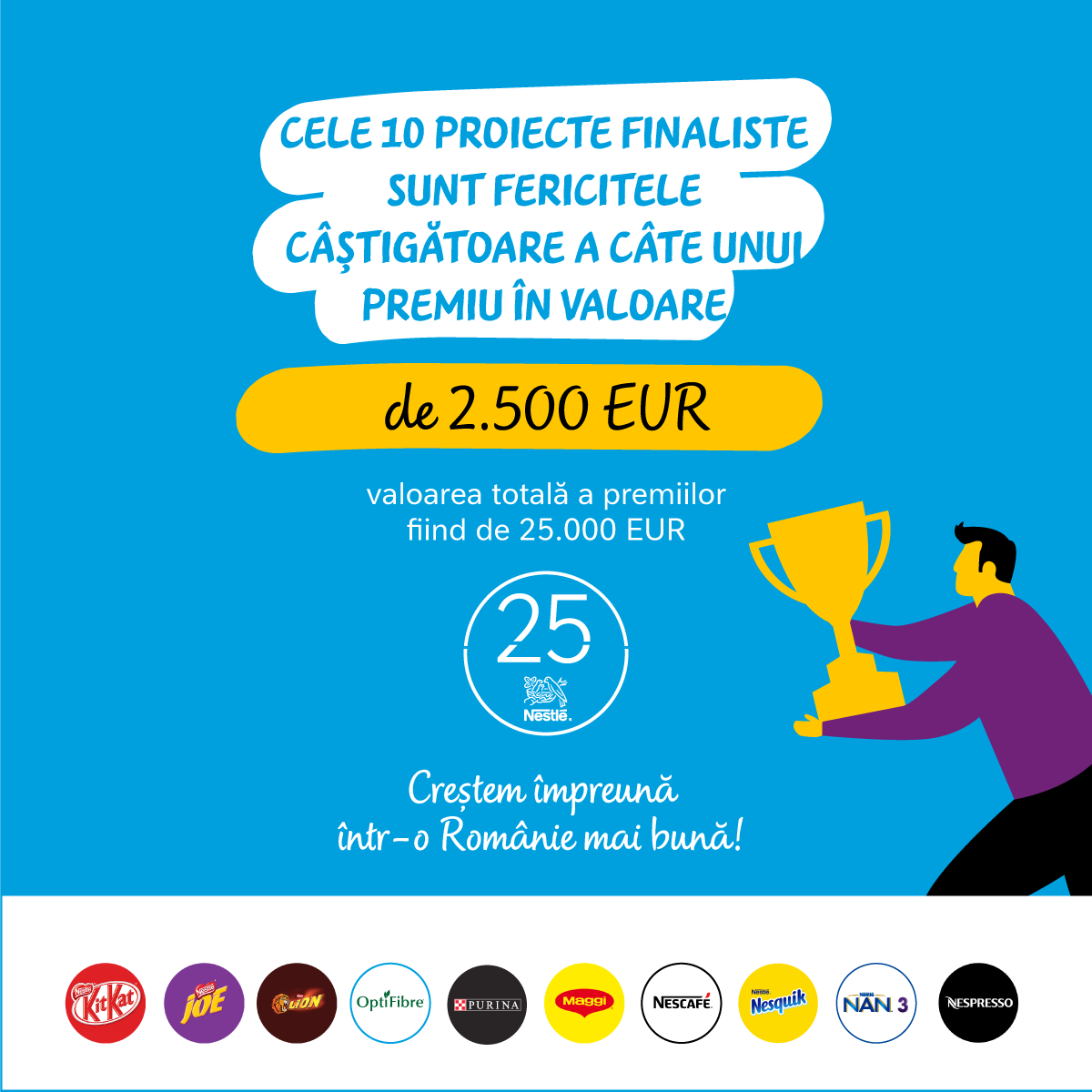 Joe®, KitKat®, Purina®, NAN®, Optifibre®, care vor oferi fiecare câte unul