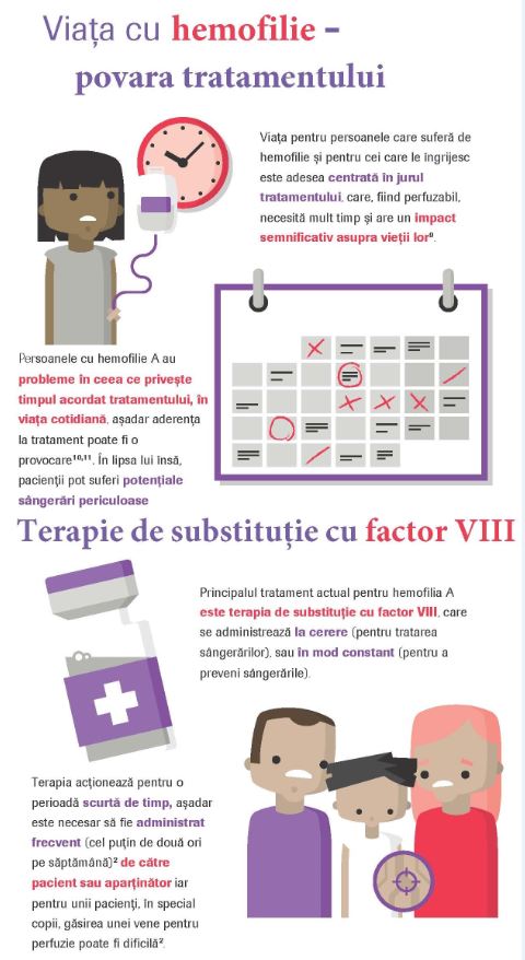 În România sunt diagnosticați 1.615 pacienţi cu hemofilie1. Este singura boală rară inclusă într-un program naţional dedicat, tratamentul pacienților în România fiind susținut de Casa Națională de Asigurări de Sănătate (CNAS)². Deşi finanţarea acestui program este considerată suficientă de către specialişti, managementul bolii în România se confruntă cu o serie de provocări, printre care aderența și complianța la tratament (măsura în care pacientul respectă tratamentul prescris și nu îl întrerupe ). Tocmai de aceea, sunt necesare terapii cu mod de administrare flexibil și interval mai mare între administrări.