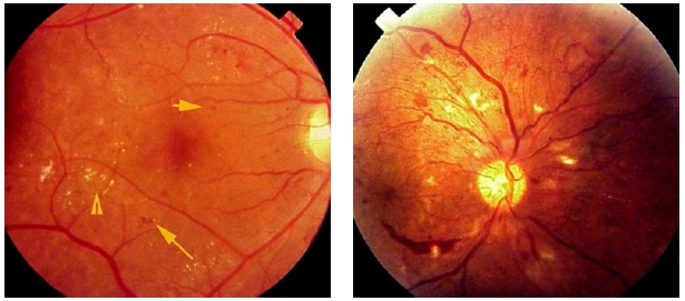În unele cazuri, pereții subțiri ai capilarelor se rup și pe retină apar mici hemoragii.