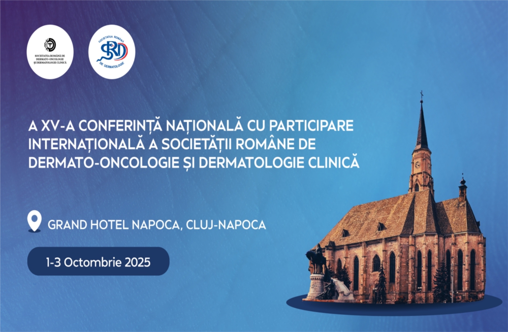 Ne face o deosebită plăcere să vă invităm la cea de-a XV-a Conferință Națională cu Participare Internațională a Societății Române de Dermato-oncologie şi Dermatologie Clinică, care va avea loc fizic în perioada 1-3 Octombrie 2025 la Grand Hotel Napoca, din Cluj-Napoca.
