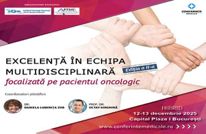 EXCELENȚĂ ÎN ECHIPA MULTIDISCIPLINARĂ focalizată pe pacientul oncologicEdiția a II-a12-13 DECEMBRIE 2025,HIBRID,HOTEL CAPITAL PLAZA, BUCUREȘTI & ONLINE PE ZOOMEVENIMENT CREDITAT EMC (CMR)C...